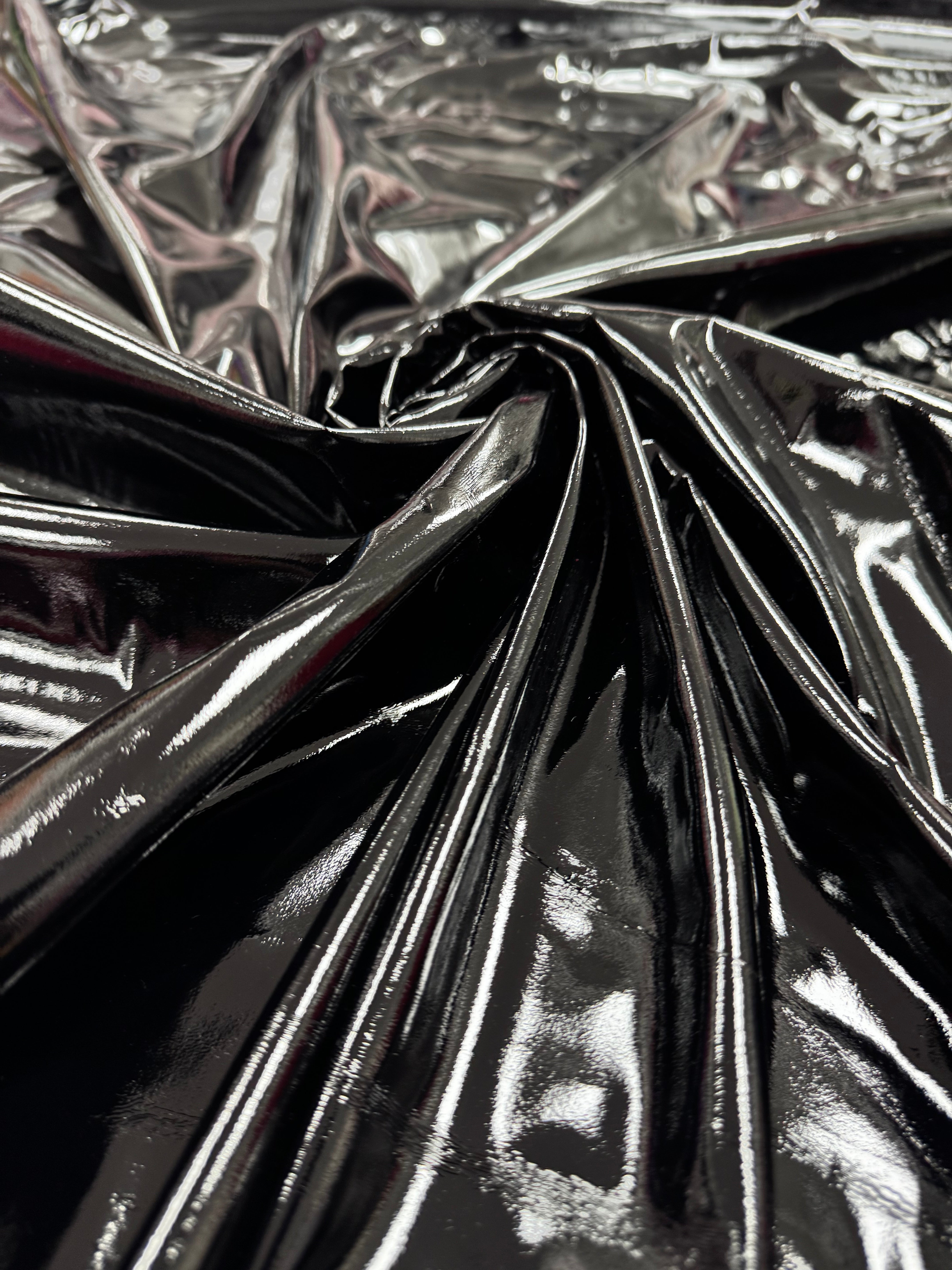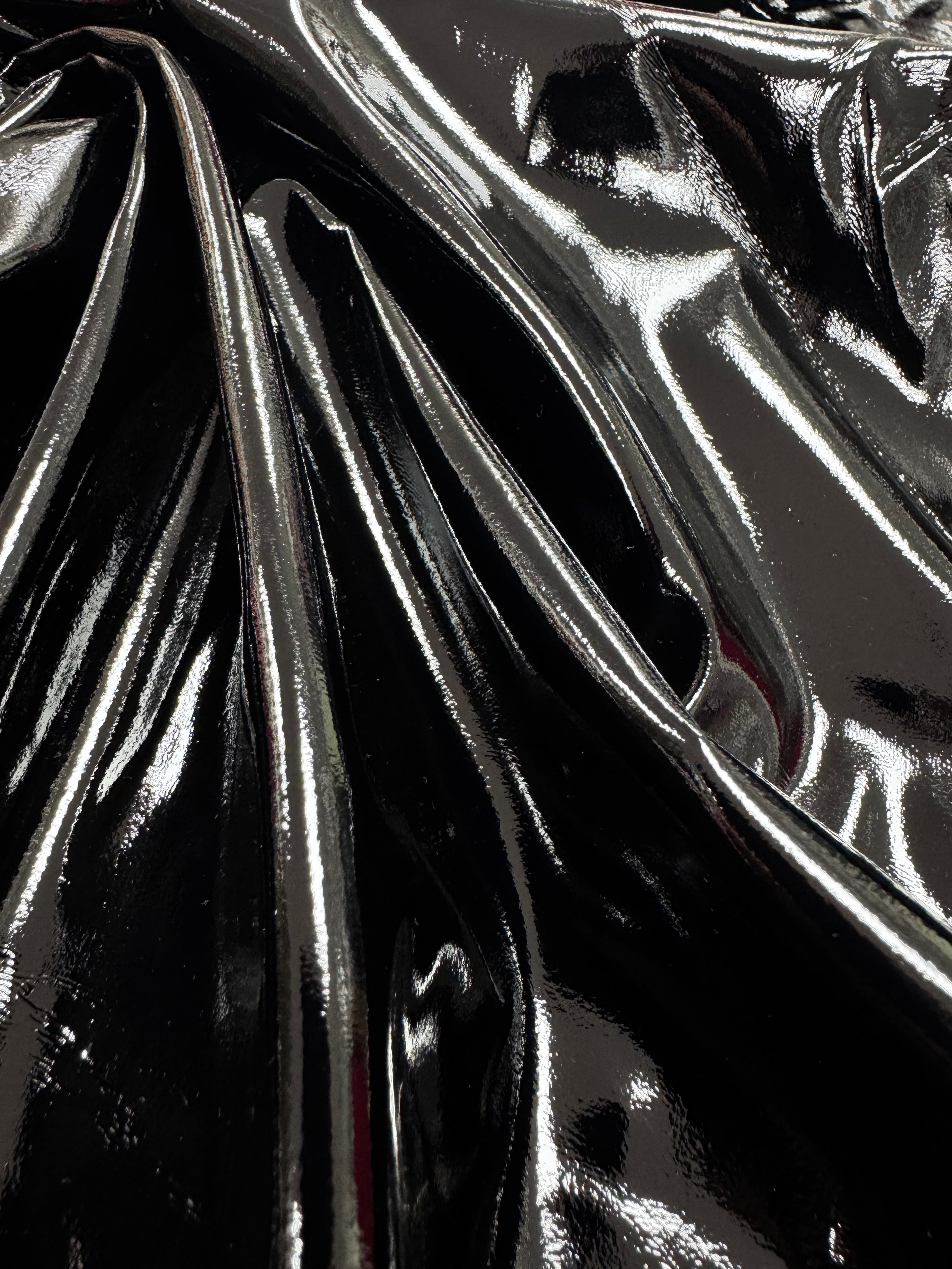Țesătura imitație piele lăcuită elastică este un material spectaculos, cu aspect modern și sofisticat, ideal pentru confecții cu efect de impact. Are o suprafață lucioasă, cu efect de lac, care imită pielea naturală, dar cu avantajul unui plus de confort datorită elasticității oferite de fibra de elastan din compoziție.