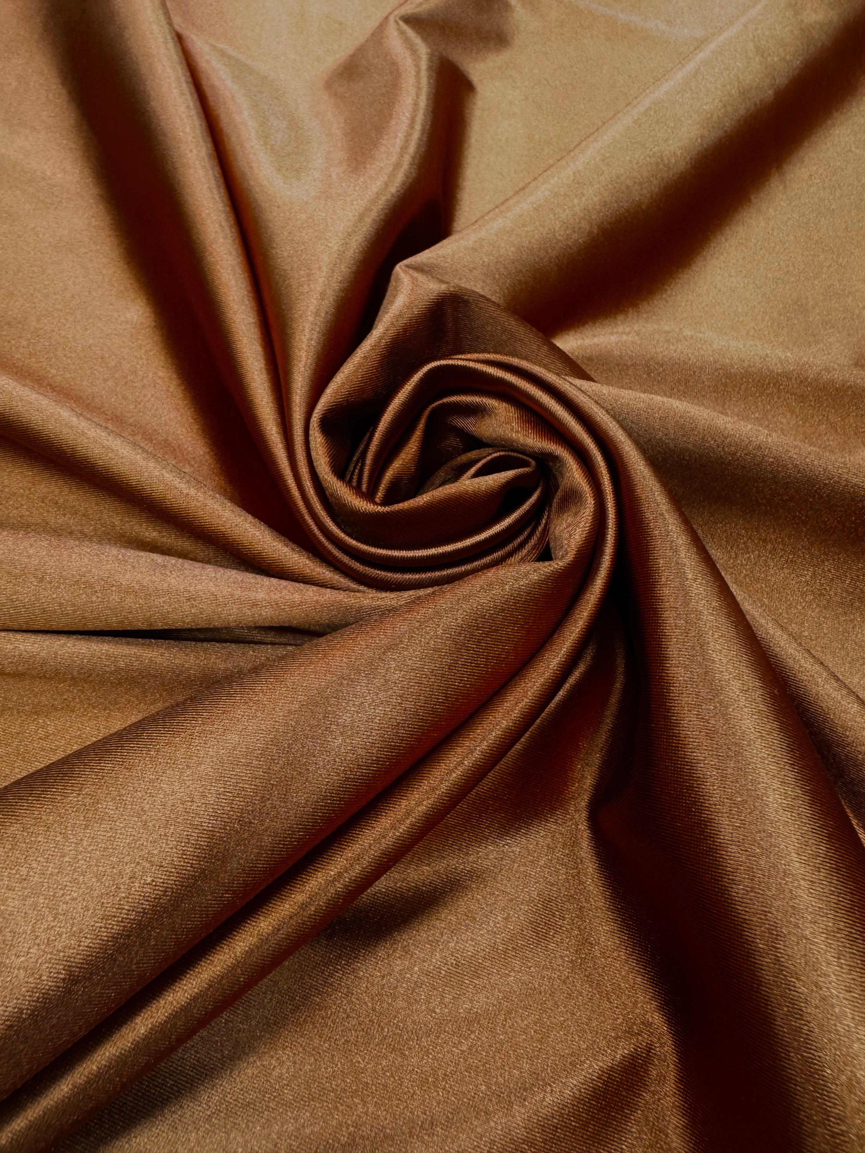 Licra lucioasă groasă este o țesătură elastică, densă și rezistentă, ideală pentru costume de baie, articole sportive, colanți, body-uri sau topuri elastice. Are o textură netedă, cu finisaj lucios care reflectă elegant lumina, oferind un aspect modern și profesional.