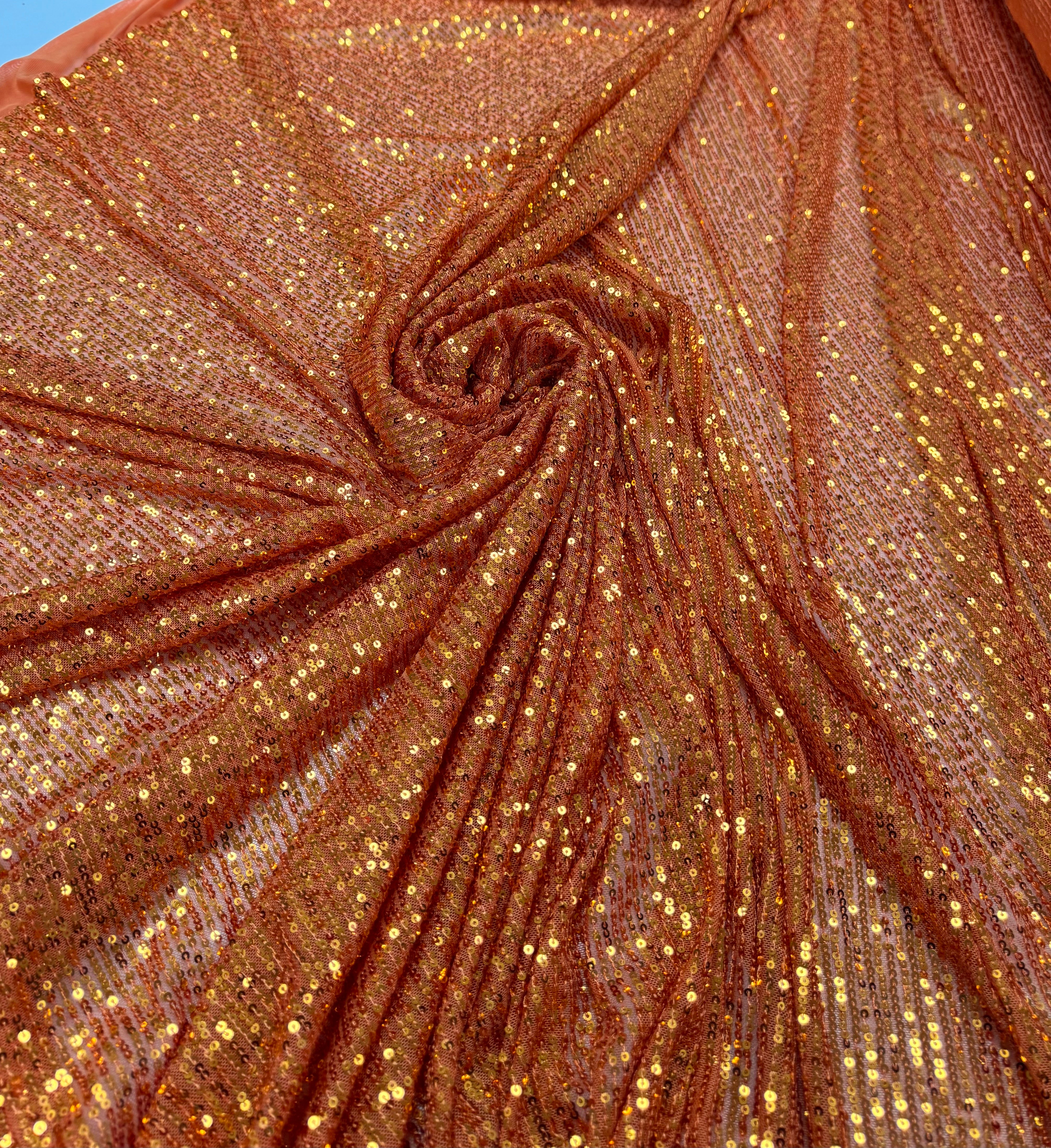 Un material spectaculos și elegant, realizat din bază de tulle fin și elastic, decorat cu paiete aplicate care oferă un efect strălucitor la fiecare mișcare. Datorită elasticității, se așază frumos pe corp și oferă confort, fiind alegerea perfectă pentru rochii de seară, ținute de scenă, evenimente speciale sau detalii decorative de lux.