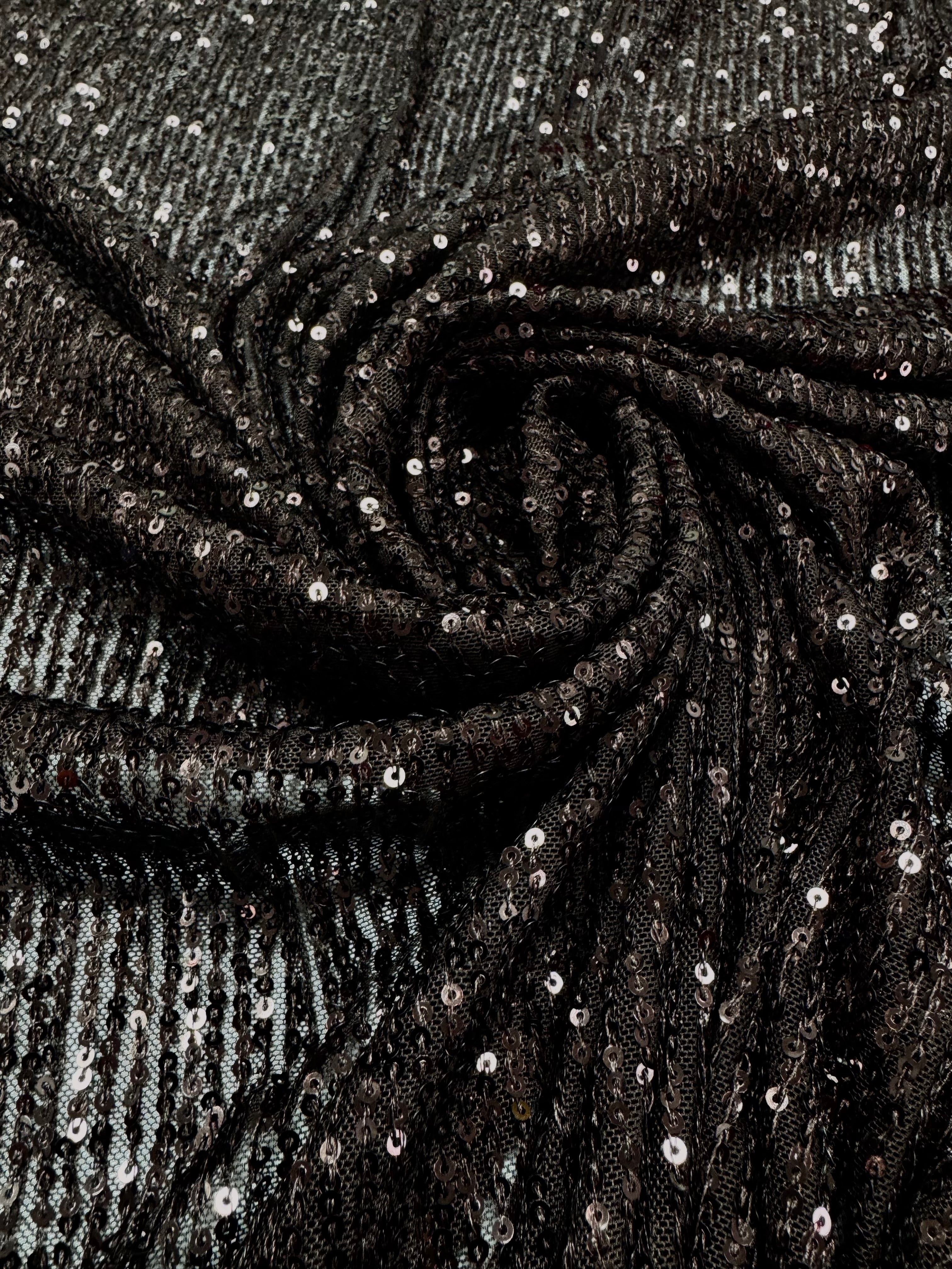 Un material spectaculos și elegant, realizat din bază de tulle fin și elastic, decorat cu paiete aplicate care oferă un efect strălucitor la fiecare mișcare. Datorită elasticității, se așază frumos pe corp și oferă confort, fiind alegerea perfectă pentru rochii de seară, ținute de scenă, evenimente speciale sau detalii decorative de lux.