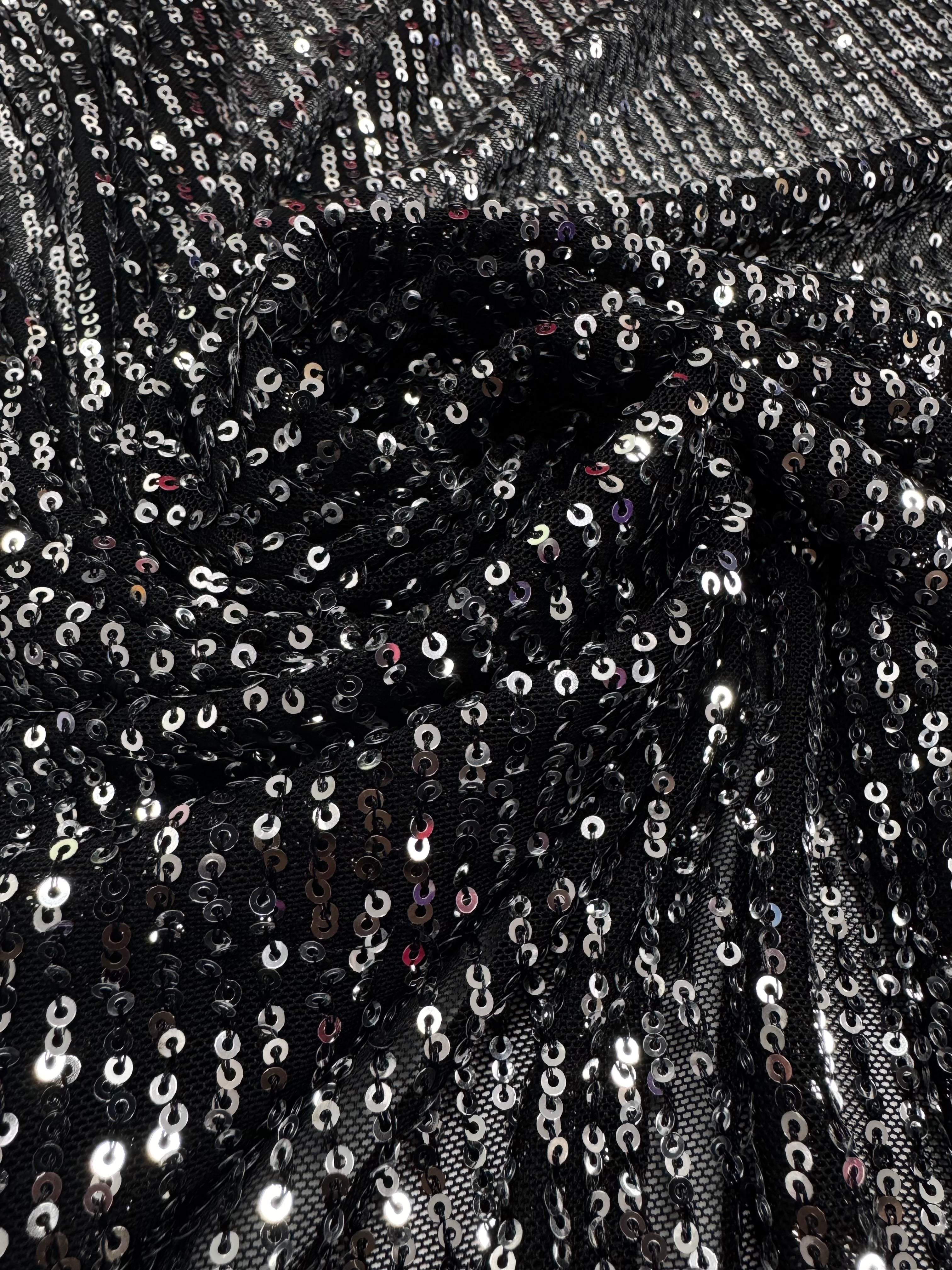 Un material spectaculos și elegant, realizat din bază de tulle fin și elastic, decorat cu paiete aplicate care oferă un efect strălucitor la fiecare mișcare. Datorită elasticității, se așază frumos pe corp și oferă confort, fiind alegerea perfectă pentru rochii de seară, ținute de scenă, evenimente speciale sau detalii decorative de lux.